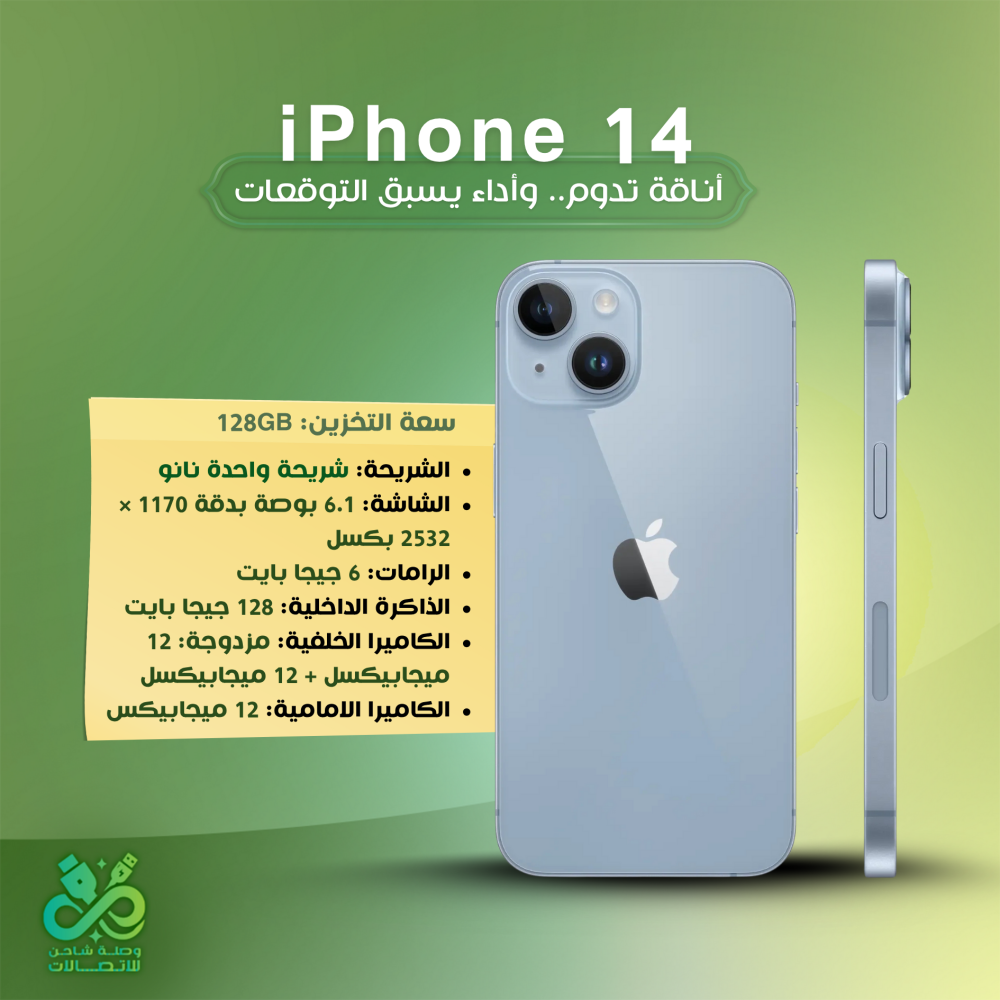 iPhone 14 – الإصدار العادي – سعة 128 قيقا